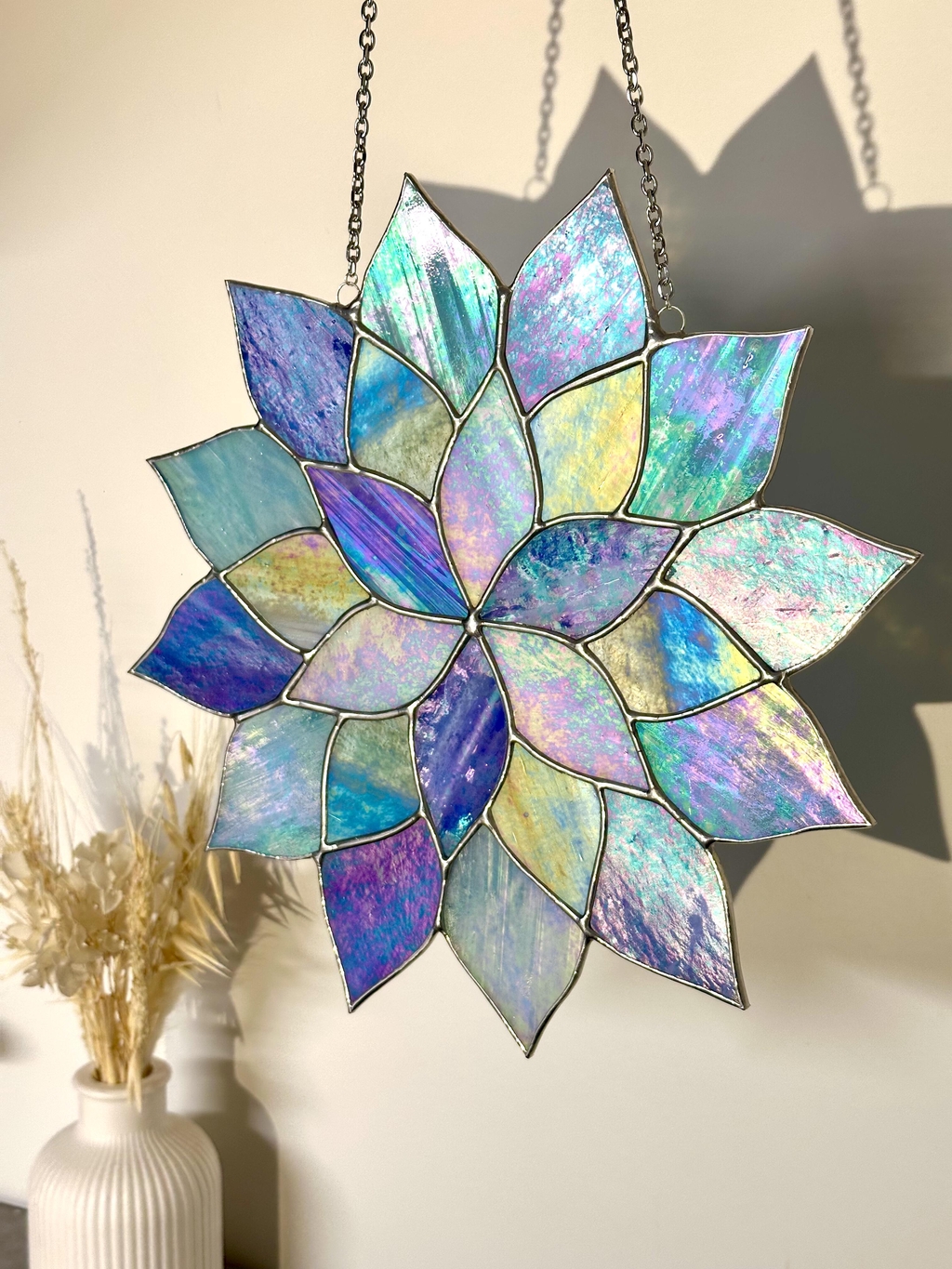 Mon aventure avec le vitrail a commencé en 2024, lors d’un stage qui a révélé une réelle passion. J’ai décidé de me lancer dans l’artisanat pour créer des pièces uniques qui captent la lumière et transmettent une énergie positive. Inspirée par la nature et les jeux de reflets, j’utilise la technique Tiffany au cuivre ou la technique traditionnelle au plomb pour façonner des vitraux modernes et des objets décoratifs en verre.